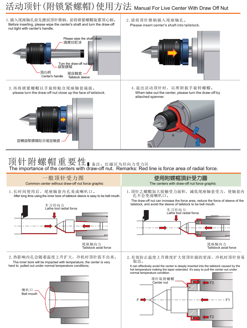 Inspecting the run out accuracy of the center tip must be under the status of holding the workbar tightly.